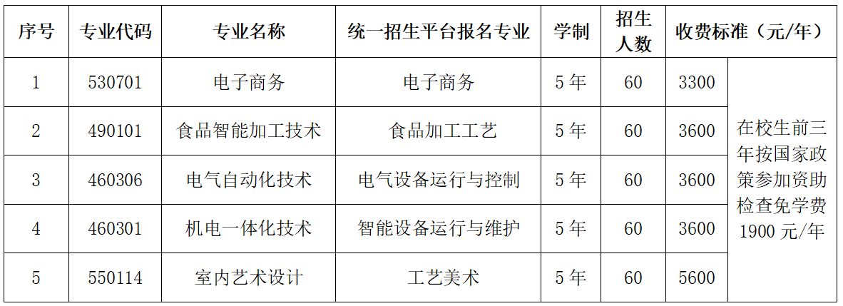 4.因报名系统设置原因,系统中所显示的五年一贯制专业名称为该专业在学籍系统中对应的中职专业名称,考生请认真核对,选择对应的五年制一贯制专业。专业对照情况如下表: