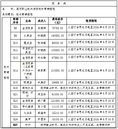 (1)采购内容:对best365官方网站登录入口校内商铺进行招租;