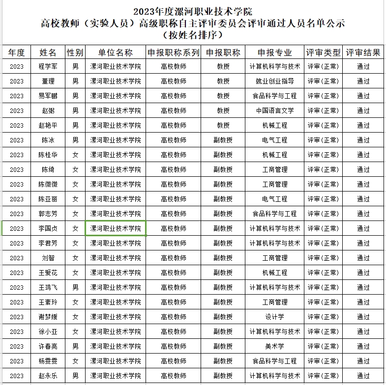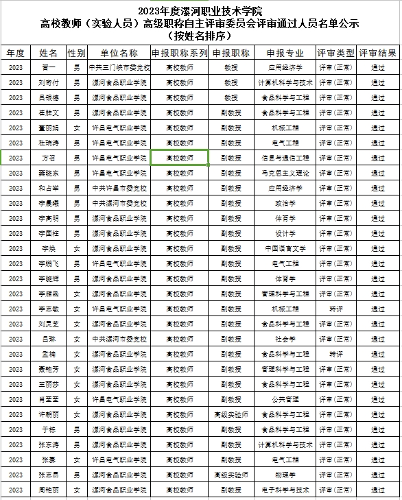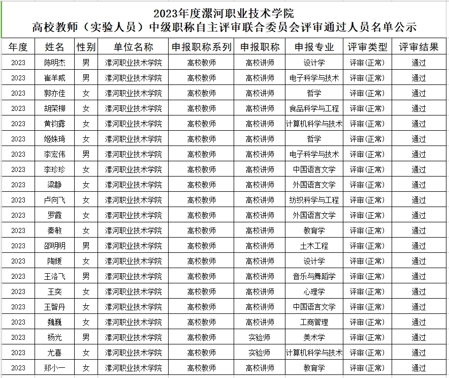 公示内容:2023年度best365官方网站登录入口高校教师(实验人员)高级职称自主评审委员会和best365官方网站登录入口高校教师(实验人员)中级职称自主评审联合委员会评审结果