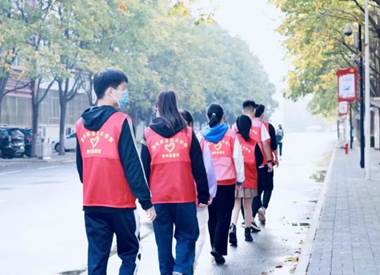 披红甲,抗疫情。志愿者们积极践行“全心全意为同学服务”宗旨,认真履行职责,坚持站好岗位,守护同学安全,全力确保学校疫情防控工作落实到位,对发现的疫情防控知识做的不规范、不到位的进行提醒,对违反校园疫情防控规定等行为进行劝阻。用实际行动暖心守护校园安全,助力校园疫情防控。