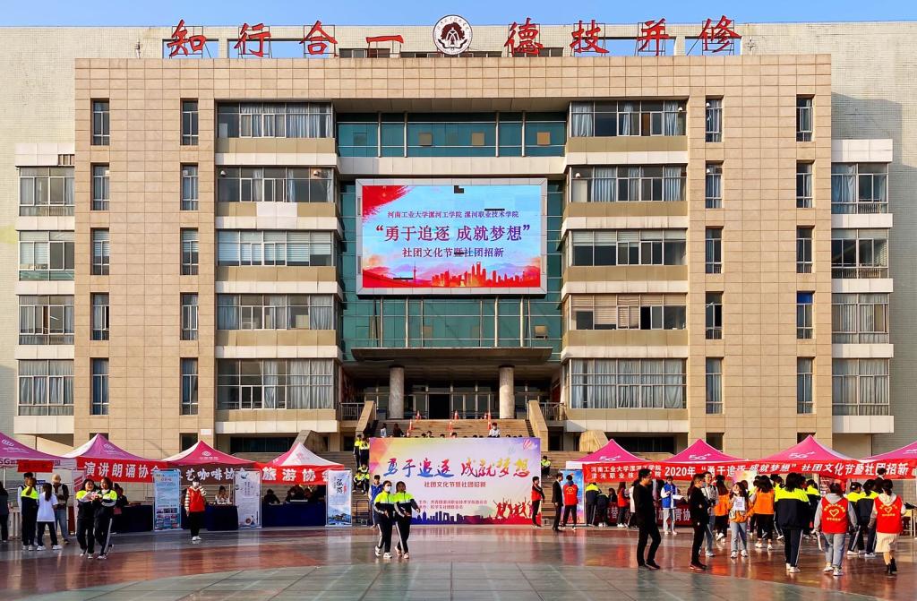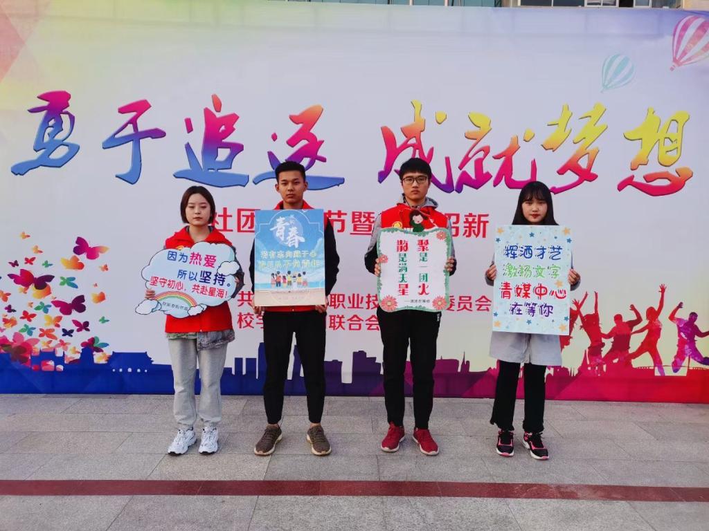 为展示我校学生社团特色风采,为社团可持续发展注入新鲜动力,由校团委主办、学生社团联合会承办的“ 勇于追逐 成就梦想”校园文化节暨社团招新活动于2020年10月23日在实训广场隆重举行。全校20个学生社团参与了展演活动。活动当天,学生们满心热情,干劲十足。在事先分配好的展示区,各社团早早集结、布置展位,通过现场表演、展架、图片、实物成果、交流互动等方式吸引同学们驻足关注。、