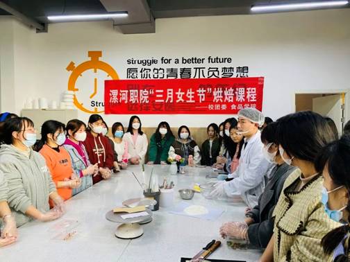 2022年3月7日下午,校团委带着30多名小仙女一起到二号实训楼四楼开展了“美丽加分,魅力倍增”主题烘焙DIY活动。