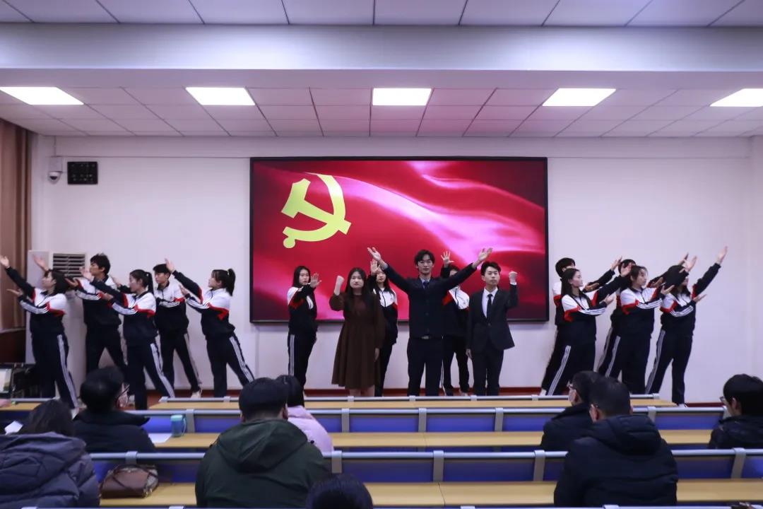 校团委书记周茜代表校团委对获得表彰的优秀同学表示祝贺,她围绕习近平总书记重要讲话精神,向团员青年提出了四点要求。一是要勤学苦练,增强本领,在矢志报国中弘扬浩然志气;二是要奋勇逐梦,自立自强,在实学实干中彰显铮铮骨气;三是要服务人民,奉献社会,在接续奋斗中提振强国底气;四是要明理增信,崇德力行,在修身立德中锤炼凛然正气。勉励大家提振精神、踏实学习以优异成绩和蓬勃姿态,迎接党的二十大胜利召开。