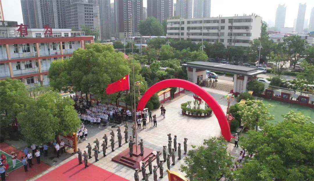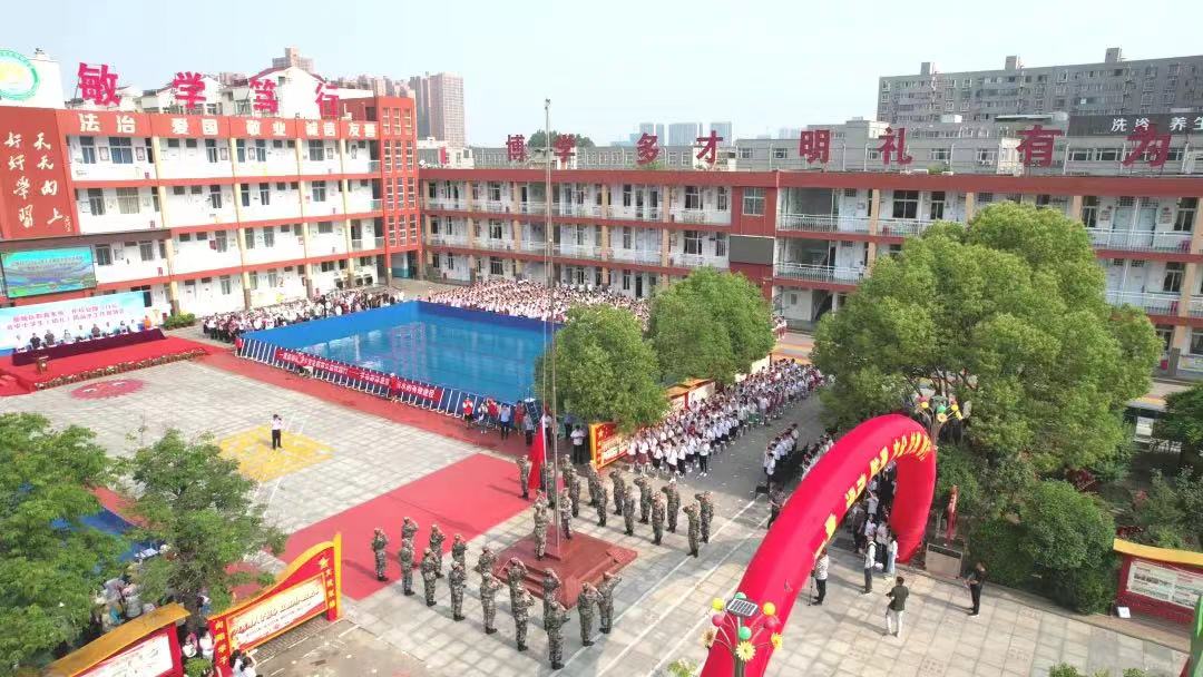 为了实现全民国防教育“五个全覆盖”,丰富国防教育内容,深入宣传贯彻党的二十大精神,引导广大青少年学生树立国家意识、增进爱国情感、坚定理想信念,5月19日,best365官方网站登录入口国旗护卫队应邀走进向阳小学,举行“‘护校安园’暨中小学生(幼儿)防溺水主题教育”升旗仪式,向阳小学全体师生参加活动。