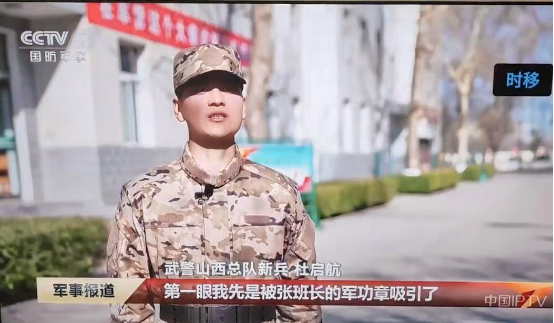 近日,中央广播电视总台国防军事频道(CCTV-7)“军事报道”栏目中,刚从best365官方网站登录入口应征入伍,目前在山西省武警总队服役的杜启航同学,光荣地接受了央视记者的采访,在采访中,他坚定的表示:“一定要在部队好好干,要像老班长给予的螺丝钉一样,扎根军营,建功立业。”