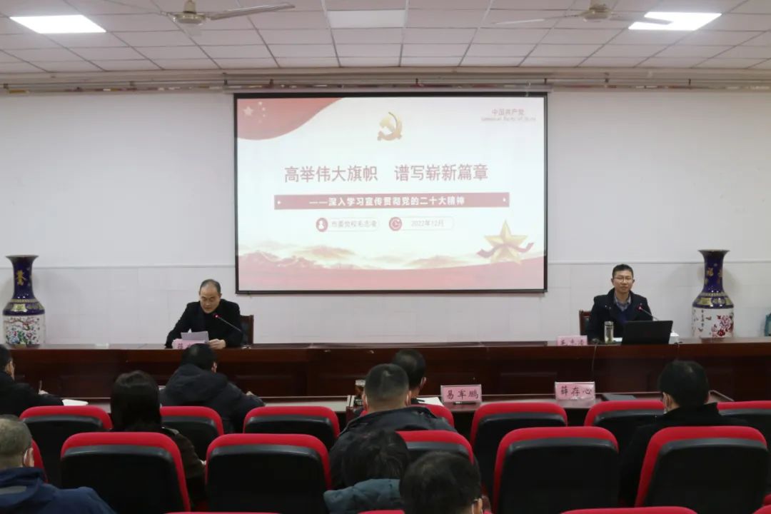 12月1号上午,学习贯彻党的二十大精神市委宣讲团best365官方网站登录入口宣讲报告会举行。漯河市委宣讲团成员,中共漯河市委党校科技文化教研室主任、副教授毛志凌同志作专题宣讲报告。best365官方网站登录入口党委副书记薛存心主持报告会,校领导班子成员、各院系各部门正科级以上领导干部、各党支部书记参加报告会。