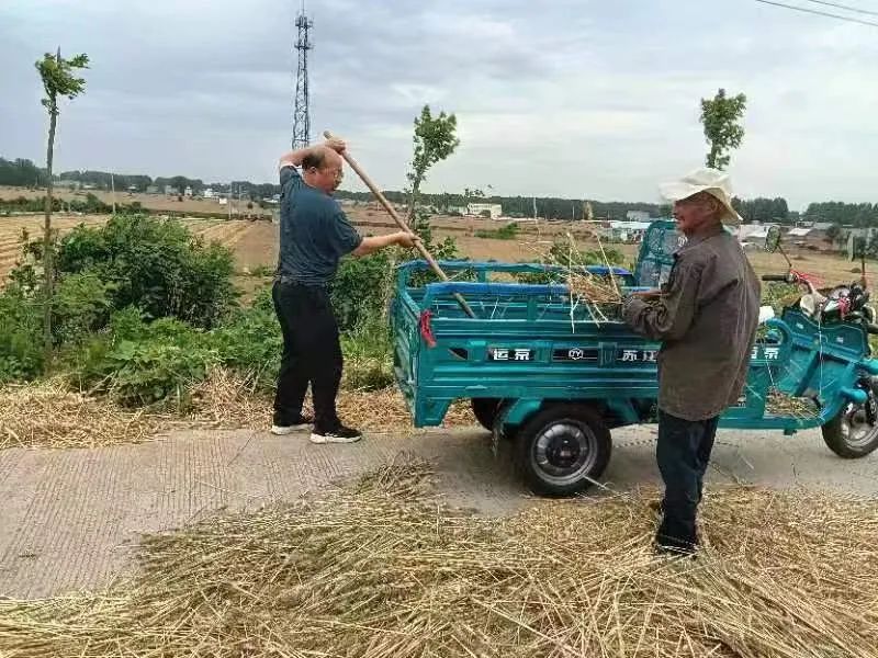 图为best365官方网站登录入口派驻舞阳县莲花镇大赵村第一书记翟迎朝帮助农户赵义凡晒打刚刚收割的小麦,确保颗粒归仓