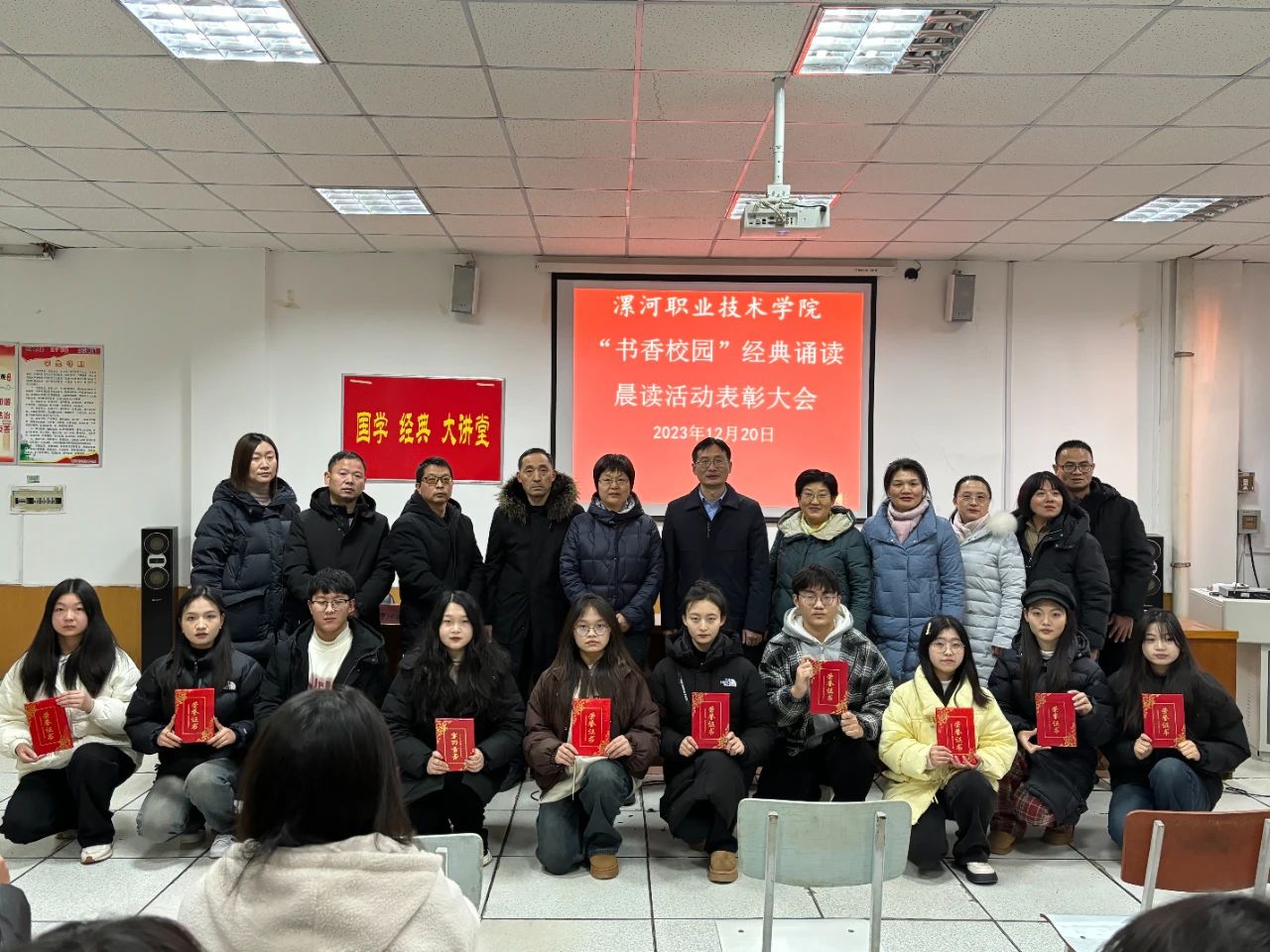 我校认真贯彻落实《漯河市深入开展新时代中华文化经典诵读活动实施方案》,举办以“阅享新时代,书香满校园”为主题的2023年阅读推广系列活动。其中图书馆和应用外语与国际教育系(许慎文化学院)联合举行“书香校园”“站立式”经典诵读晨读活动,成为学院早晨最亮丽的一道风景线。每日坚持不懈地晨读活动,帮助学生养成良好的学习习惯,践行着“一日之计在于晨”的优良学风。诵读活动涌现出一批优秀的学生,经过个人申报和班级推荐等程序,全校共评出50名“最美晨读之星”。在总结表彰大会上,学生代表唐梓萱同学作获奖发言,分享了在读书活动中的收获和成长,表达了利用图书馆资源进行综合素质提升的过程和感受,抒发了我校学生只争朝夕、奋发努力的信心和朝气。