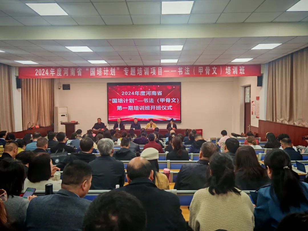 近日,2024年度河南省“国培计划——书法(甲骨文)项目”培训在best365官方网站登录入口开班。河南省文字学会名誉会长、中国古文字学会理事、许慎文化学院名誉院长王蕴智教授,古文字学博士后、淮北师范大学钱磊老师,河南大学古文字学在读博士李会林老师出席仪式。